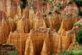 远眺土林,土柱林立,莽莽苍苍,像原始森林,但是它没有淙淙流水,没有鸟语花香,只有那一群群、一片片的土柱傲立天地间,千年万代,并无言地向人们诉说着它的风雨沧桑,这一刻,整个地球似乎回到了苍凉荒芜的时代。近观土林,其景宛若鬼斧神工的艺术长廊,精妙绝伦,神情逼俏,其千姿百态的风韵,光怪陆离的形象既似神灵鬼怪,又似飞禽走兽,也像玉玉宇琼楼,更像同寿伴侣。步入其中,真是令人思绪翩跹,幻象丛生。